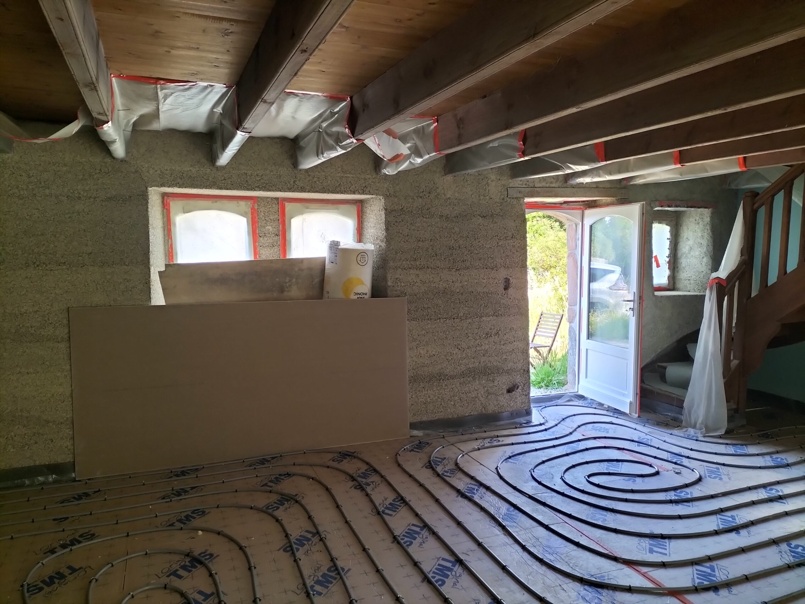 Béton de chanvre pour l'isolation, sols en parquet et en fibres.
