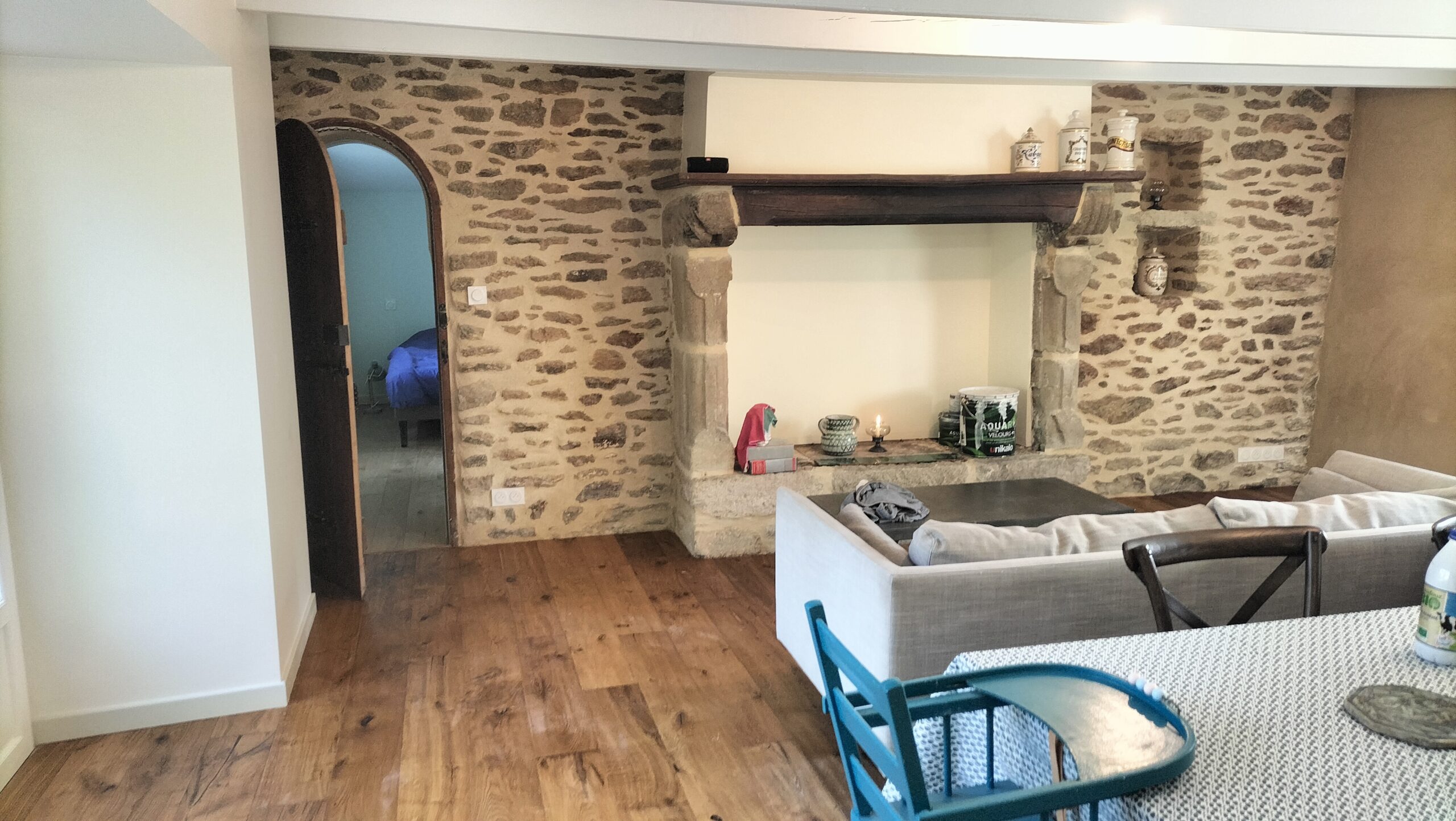 L'intérieur a été complètement refait avec l'utilisation de matériaux naturels.